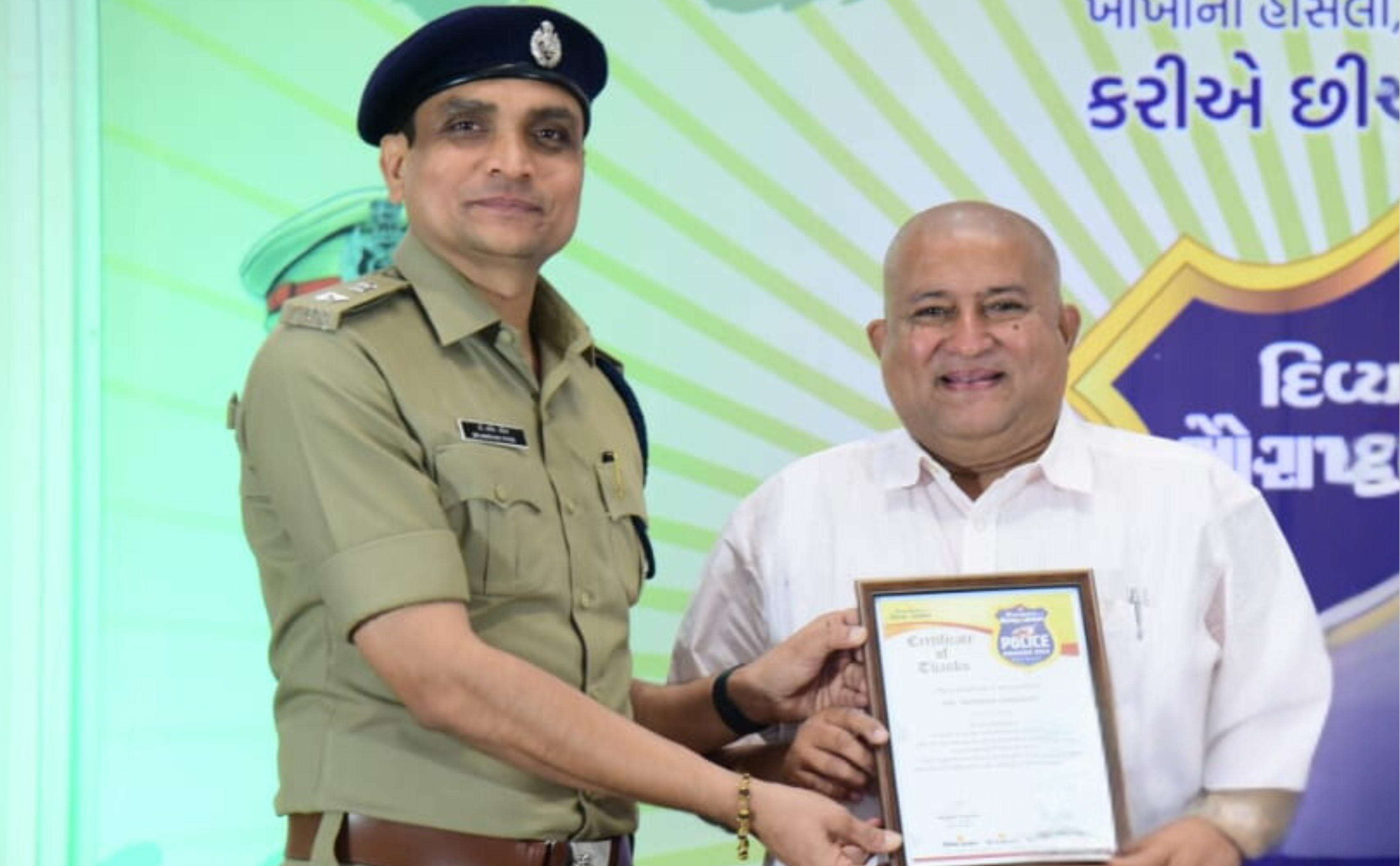 Honoured by Superintendent of police Bhavnagar. Dr. HARSHADBHAI PATEL (IPS)