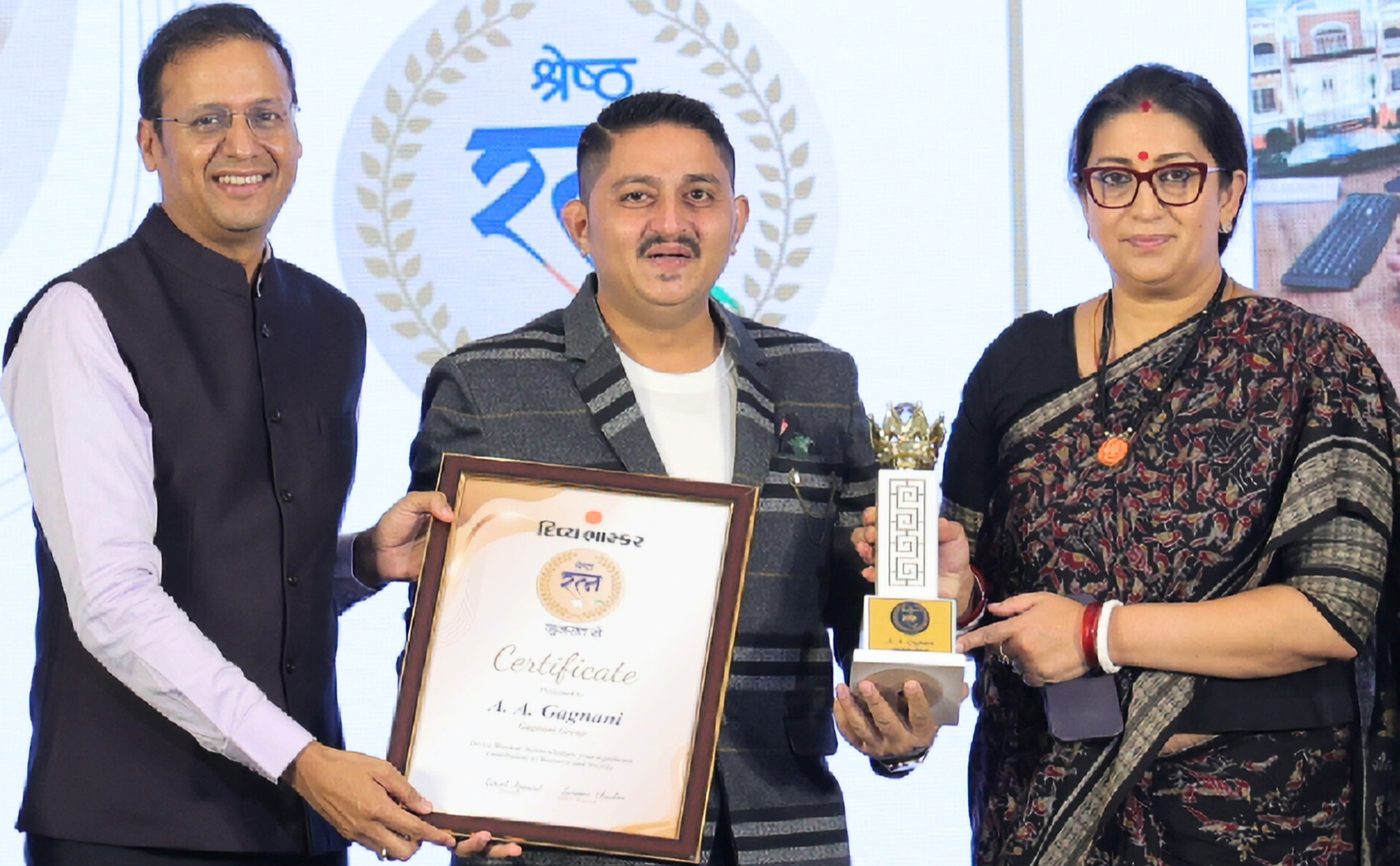 Honoured by Honourable Union Cabinet Minister, Govt. of India. Smt. SMRITI IRANI