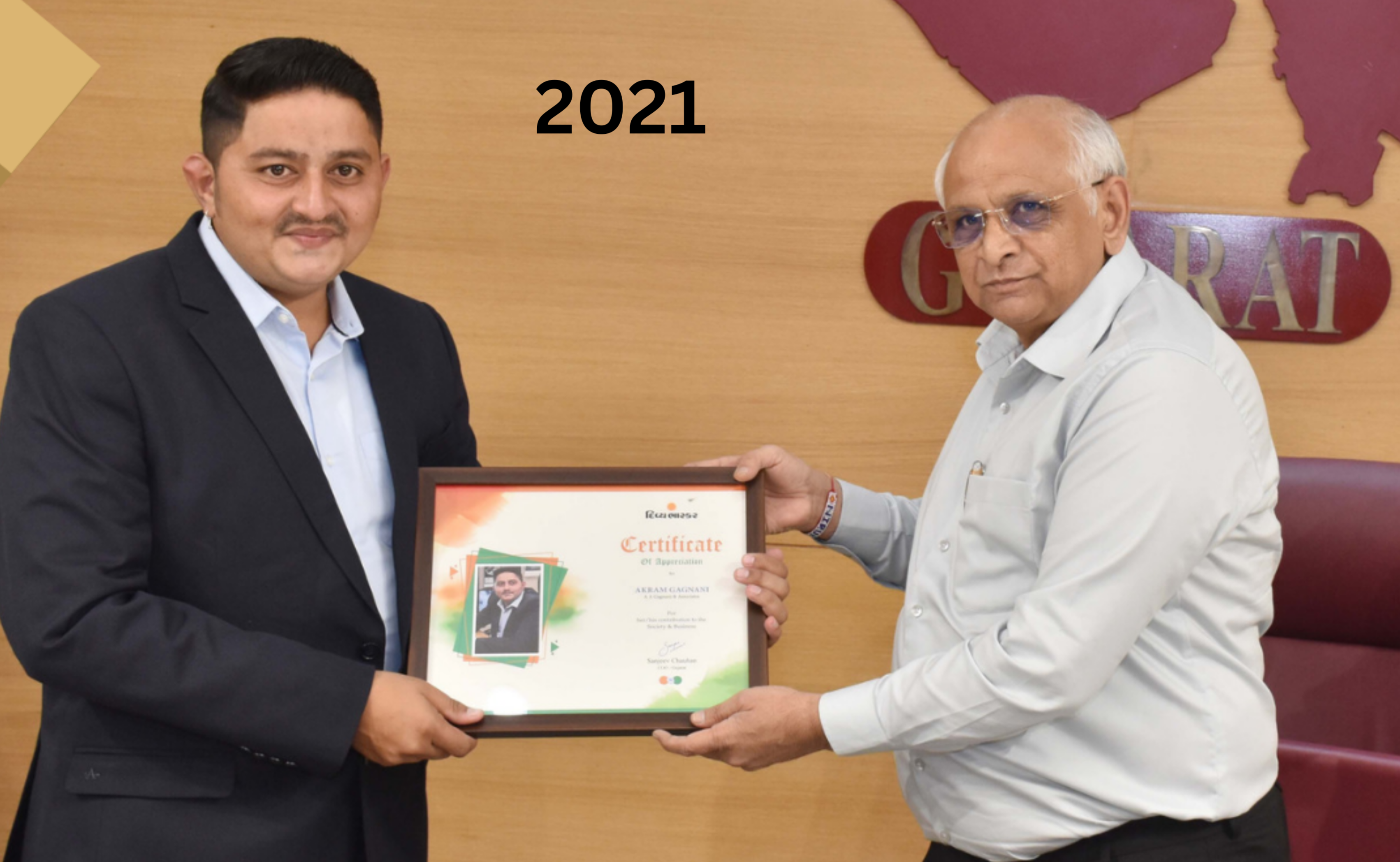 Honoured by Honourable Chief Minister of Gujarat. Resp. BHUPENDRABHAI R. PATEL