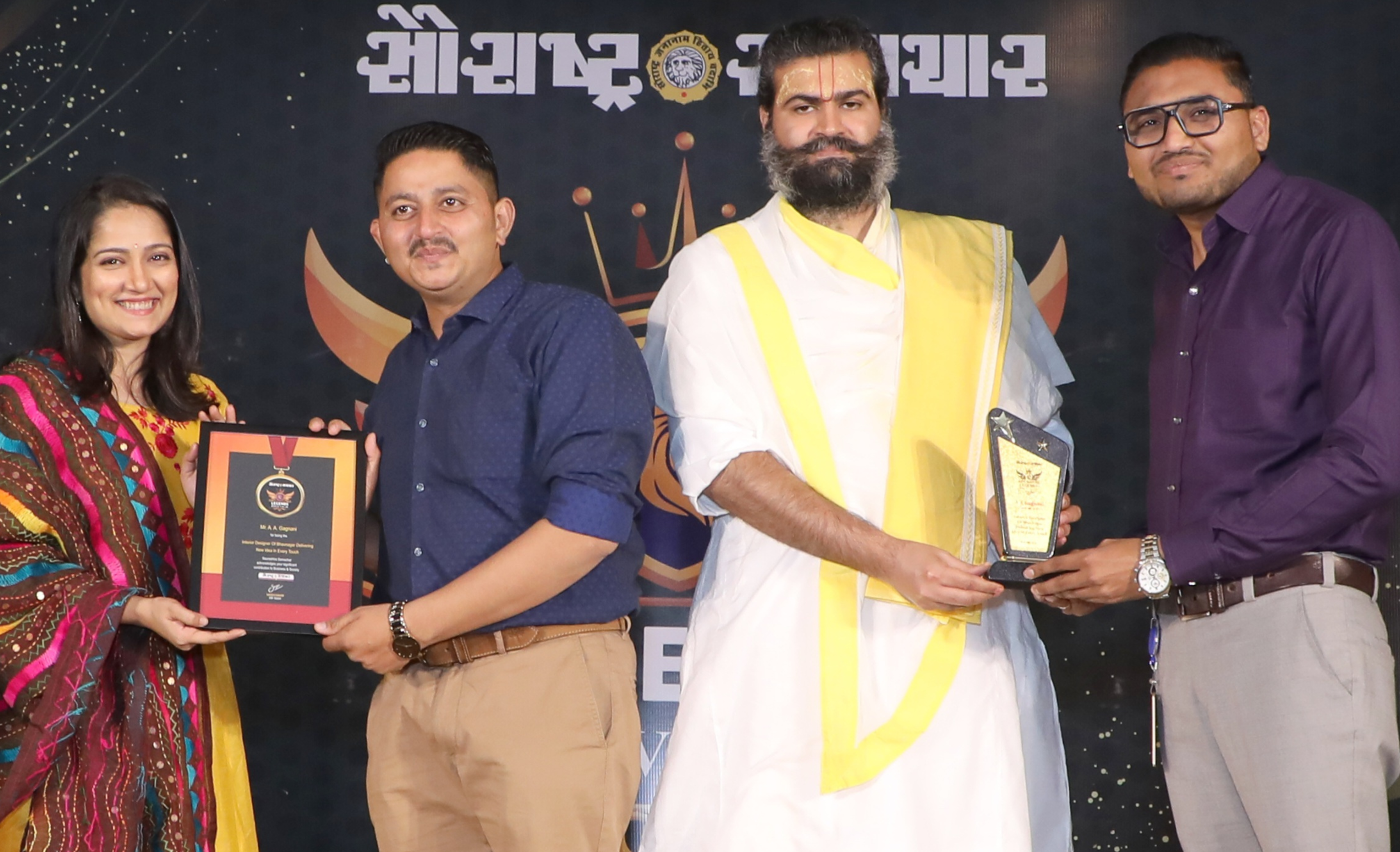 Honoured by Honourable Yuvraj Shree (Bhavnagar) JAIVEERRAJSINHJI GOHIL & Mayor of Bhavnagar Smt. KIRTIBEN DANIDHARIYA